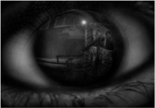 Below is the opening scene of CRAWLERS with – as an online-only bonus – some gorgeously sinister imagery by digital artist Malcolm Harrison. (Note: You can click on any of the images to see a bigger, more detailed version.)